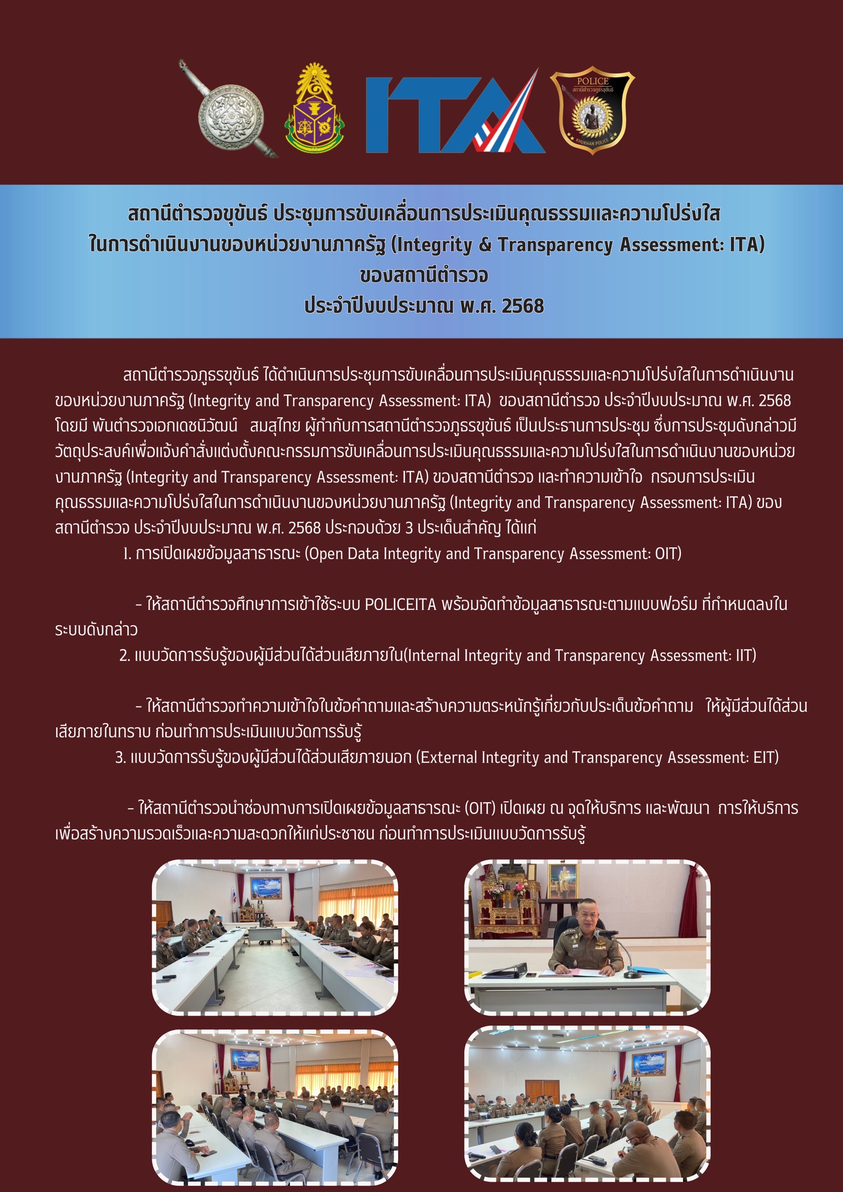 การประชาสัมพันธ์ขอมูลผลการดำเนินงานของหน่วยเรื่องการประเมิน ITA ปีงบประมาณ พ.ศ.2568